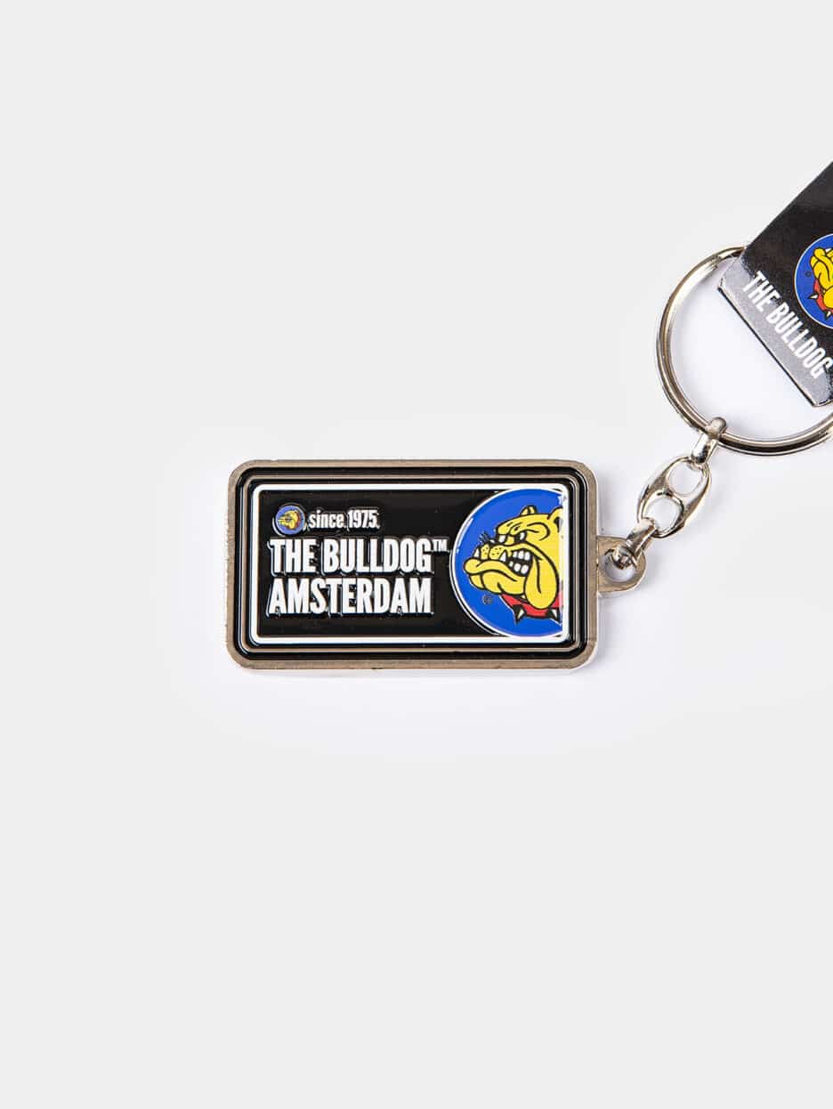 Een stevige Nummerplaat Sleutelhanger in Zwart met kleurrijk The Bulldog™ logo en metalen ring.