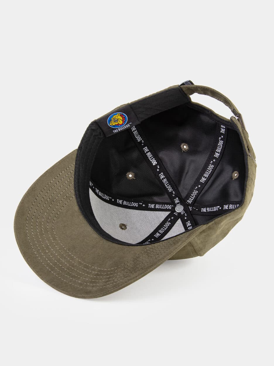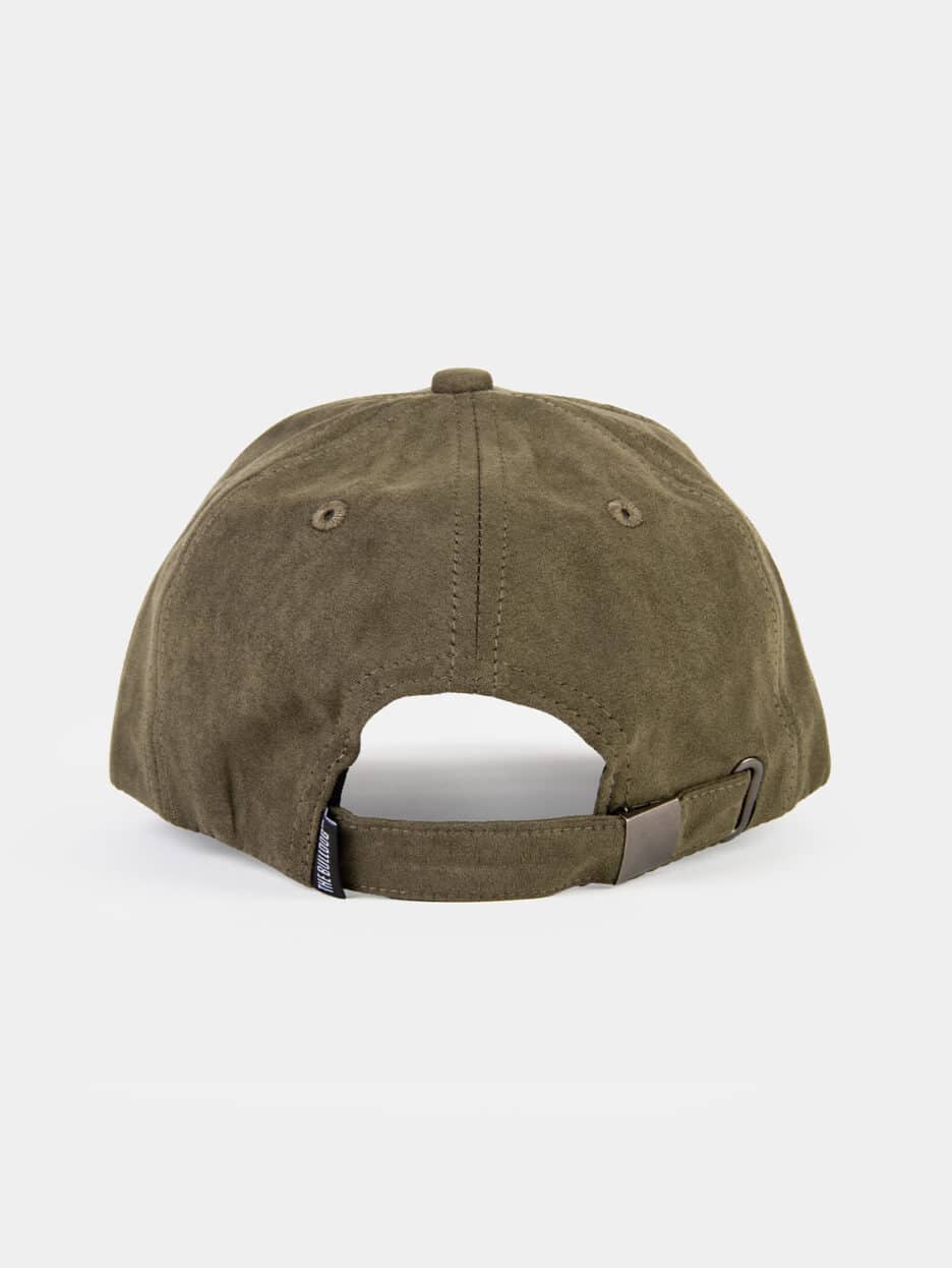 Een zachte suède cap in diep olijfgroen, afgewerkt met ons originele logo en een eenvoudig verstelbare pasvorm.