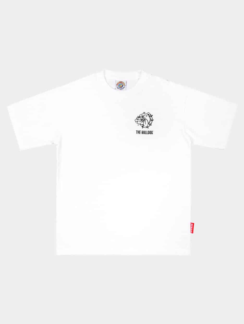 Kids T-Shirt in White made from 100% cotton with a black The Bulldog Print. Available in adult sizes too.